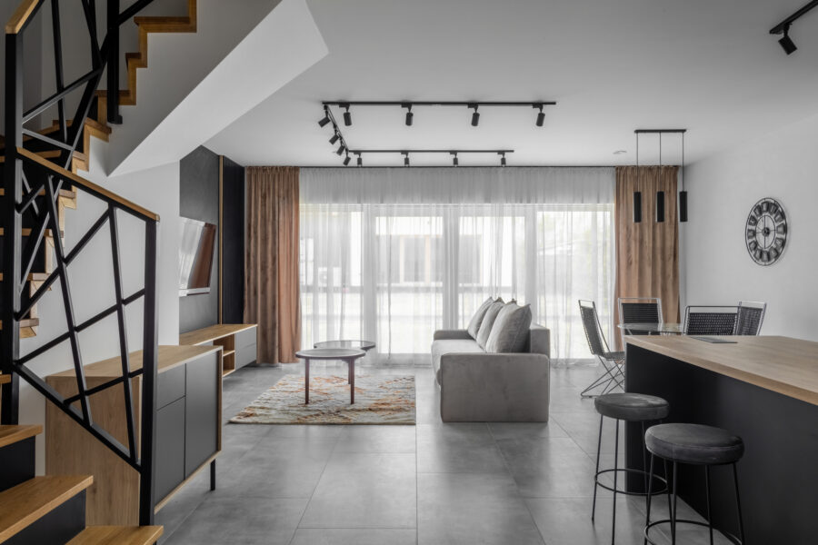 --- PAKIET INDYWIDUALNY ---Rezydencja pod Warszawą to wyjątkowa przestrzeń o niepowtarzalnym charakterze, gdzie zastosowano wiele nowoczesnych rozwiązań. Do wykończenia rezydencji użyto elementów stalowych, które w połączeniu z drewnem nadają nerowtarzalengo efektu.